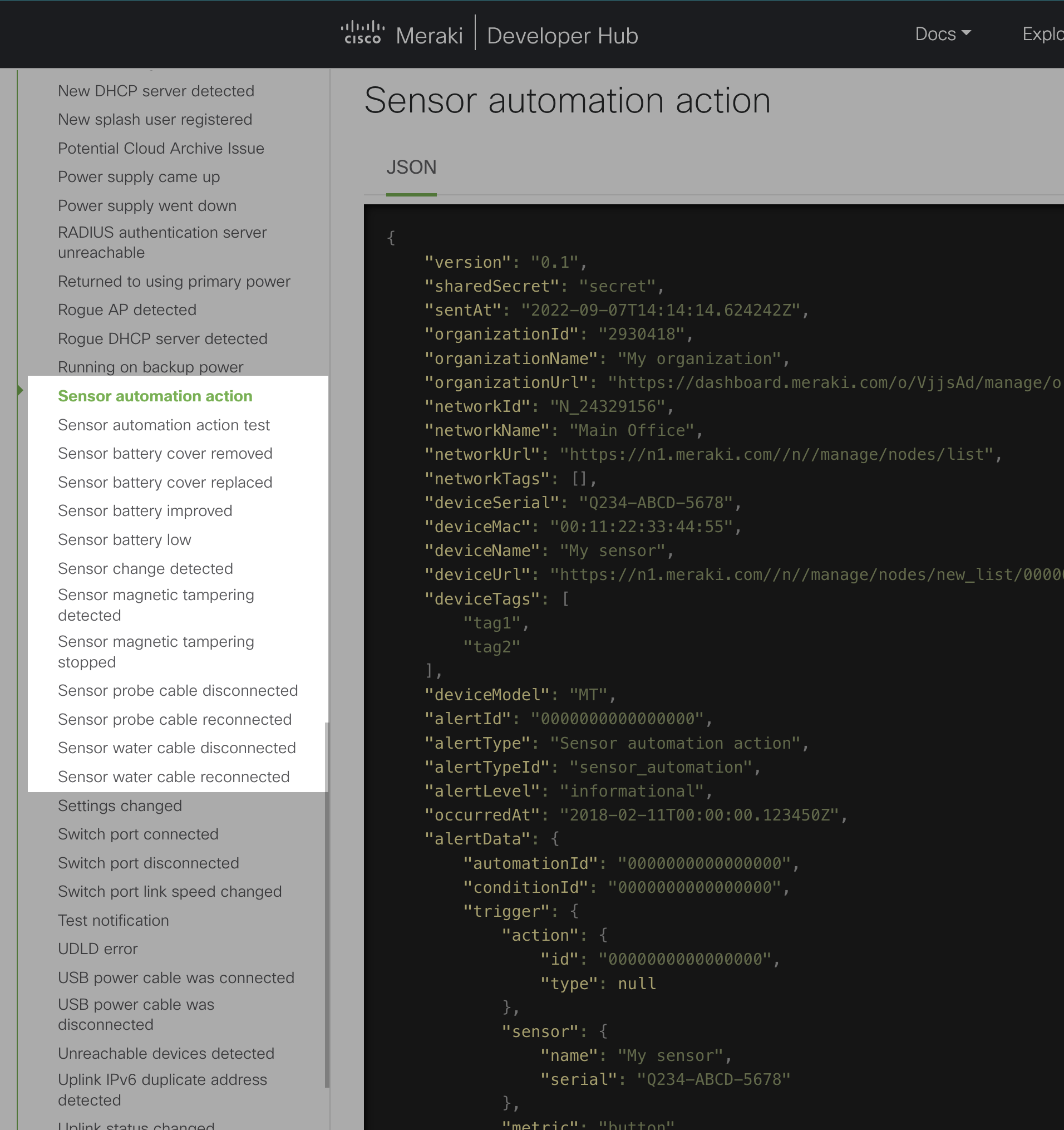 - Webhook Alerts for MT Sensors are now documented and viewable in the API