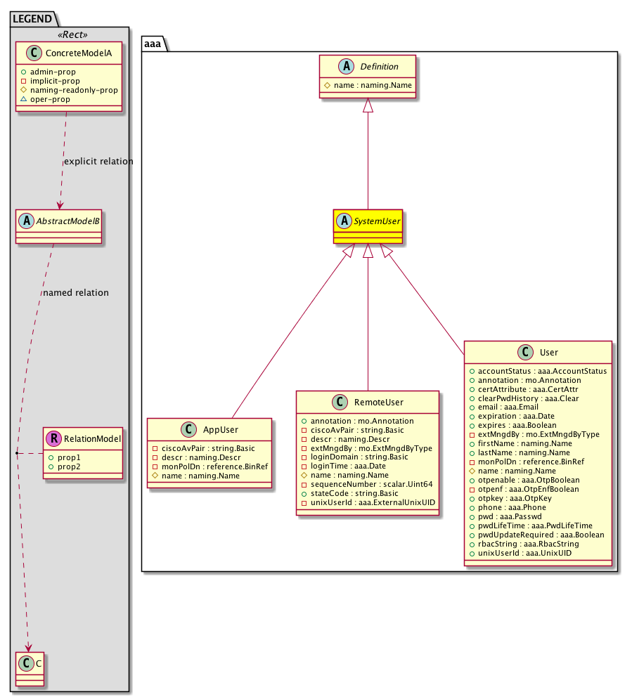 [V] aaa:SystemUser The base class for a system user. This is an abstract class and cannot be instantiated.