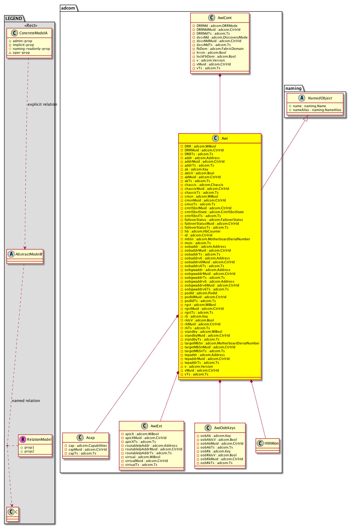 Super Mo: naming:NamedObject, Container Mos: adcom:AwiCont (deletable:no), Contained Mos: adcom:Acap, adcom:AwiExt, adcom:AwiOobKeys, adcom:HlthMon, |