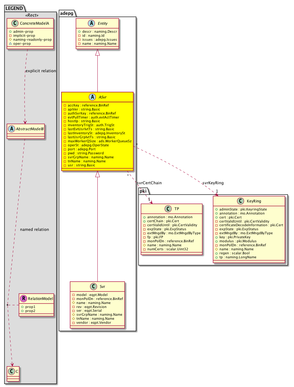 Super Mo: adepg:Entity, Sub Mos: adepg:Svr, Relations To: pki:TP, pki:KeyRing, Relations: adepg:RsSvrCertChain, adepg:RsSvrKeyRing, |