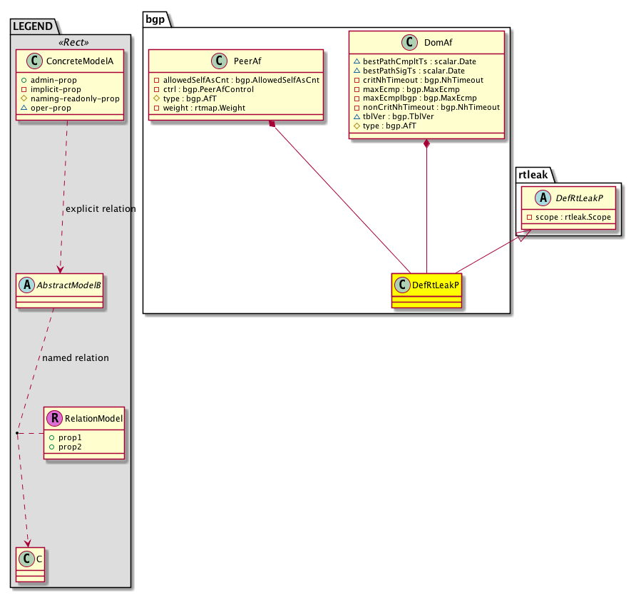 [V] rtleak:LeakP A container for the leak policy. Leak policies are categorized into intra protocol, inter protocol, and default route leak policies. These policies describe the routes to be injected into a given destination protocol domain. The destination domain where the routes are injected contains this leak policy.