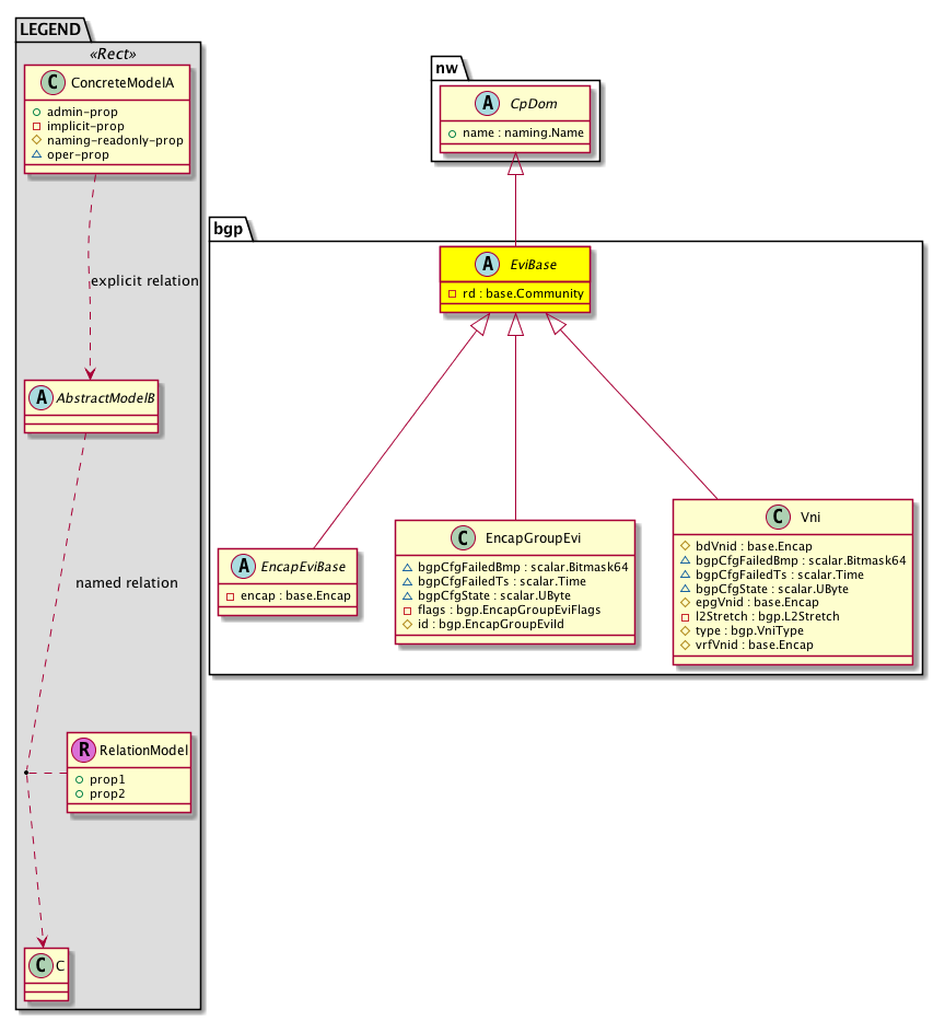 Sub Mos: bgp:EncapEviBase, bgp:EncapGroupEvi, bgp:Vni,