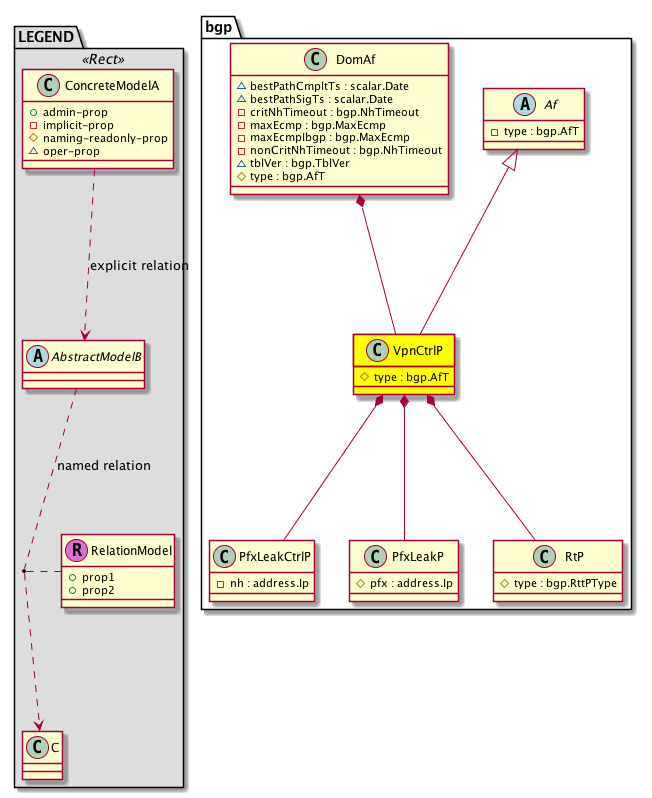 bgp:PfxLeakP This objects holds route leak policy for a given network |