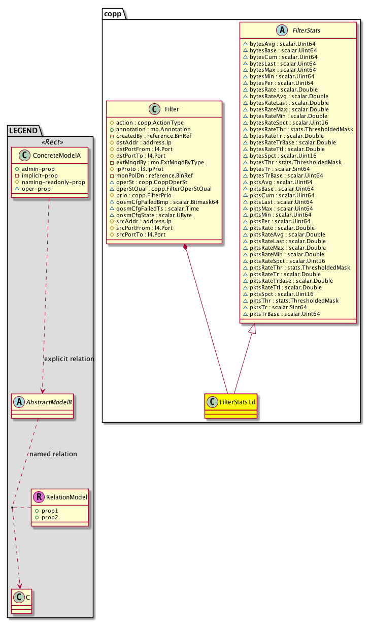 [V] copp:FilterStats1d A class that represents the most current statistics for Filter Match Counters in a 1 day sampling interval. This class updates every hour.
