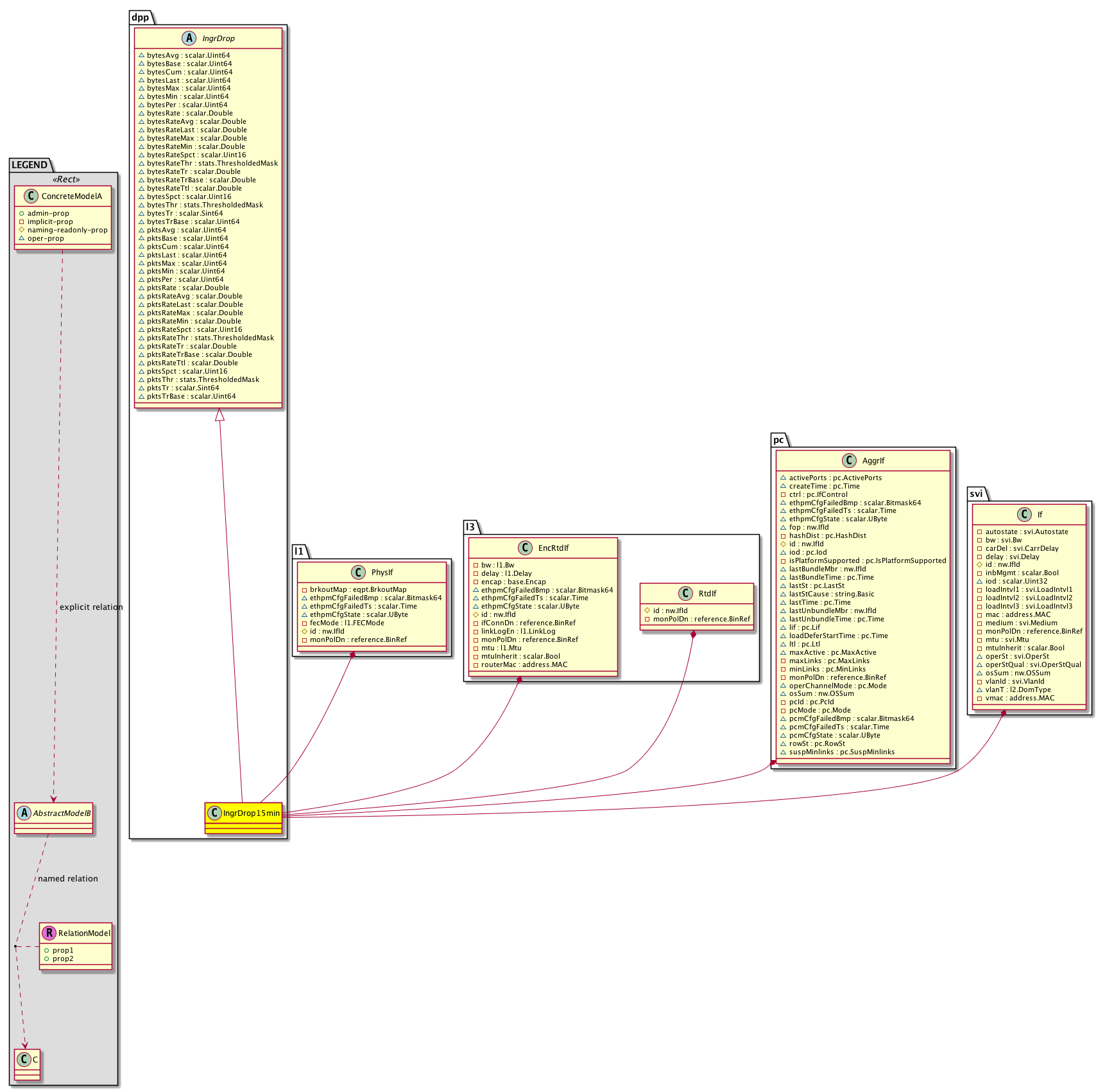 [V] dpp:IngrDrop15min A class that represents the most current statistics for Ingress Data Plane Policer Drop Counters in a 15 minute sampling interval. This class updates every 5 minutes.