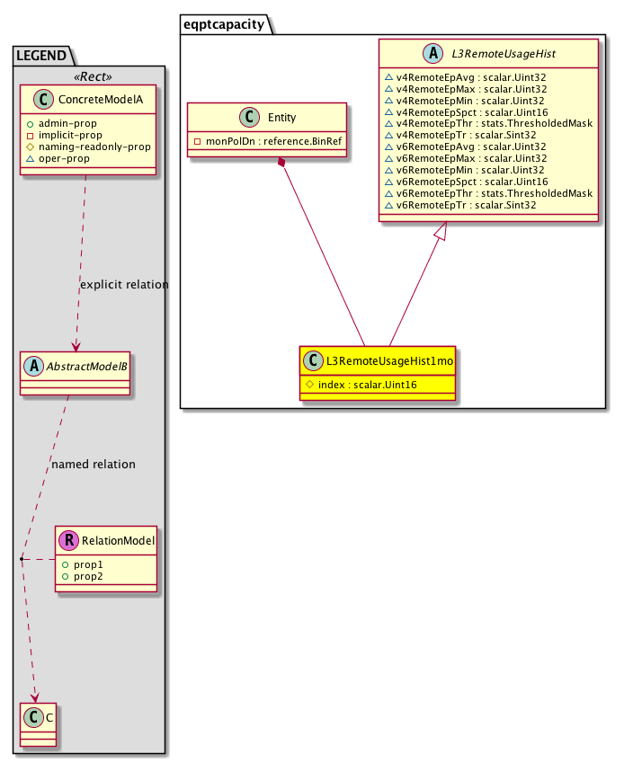 [V] eqptcapacity:L3RemoteUsageHist1mo Layer3 remote entries usage statistics. A class that represents historical statistics for Layer3 remote entries usage count in a 1 month sampling interval. This class updates every day.