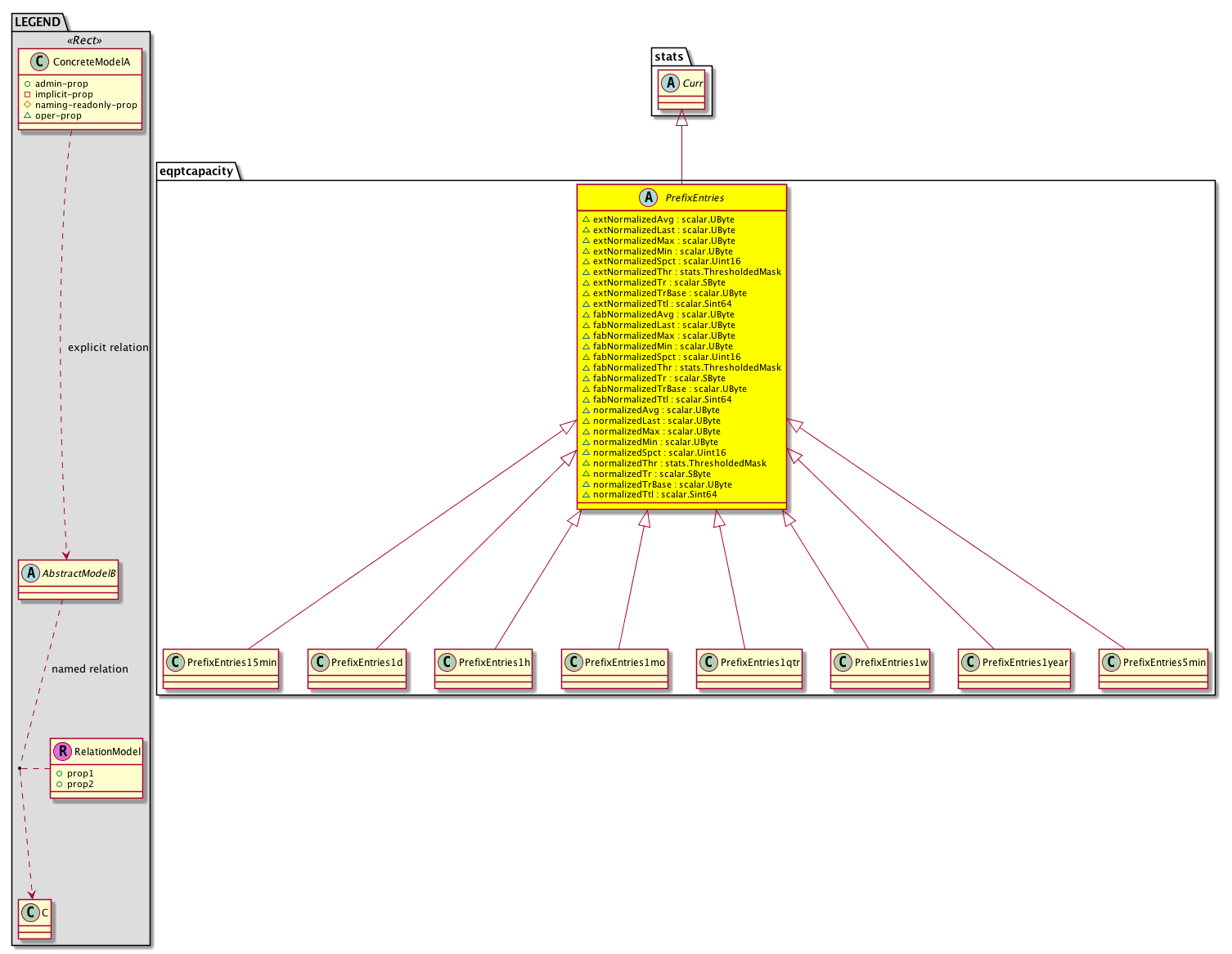 fabNormalizedTrBase (eqptcapacity:PrefixEntries:fabNormalizedTrBase) Fabric Subnet (v4 and v6) prefix entries usage. This is the cumulative value of the counter from the previous collection interval. Used for internal purposes. |