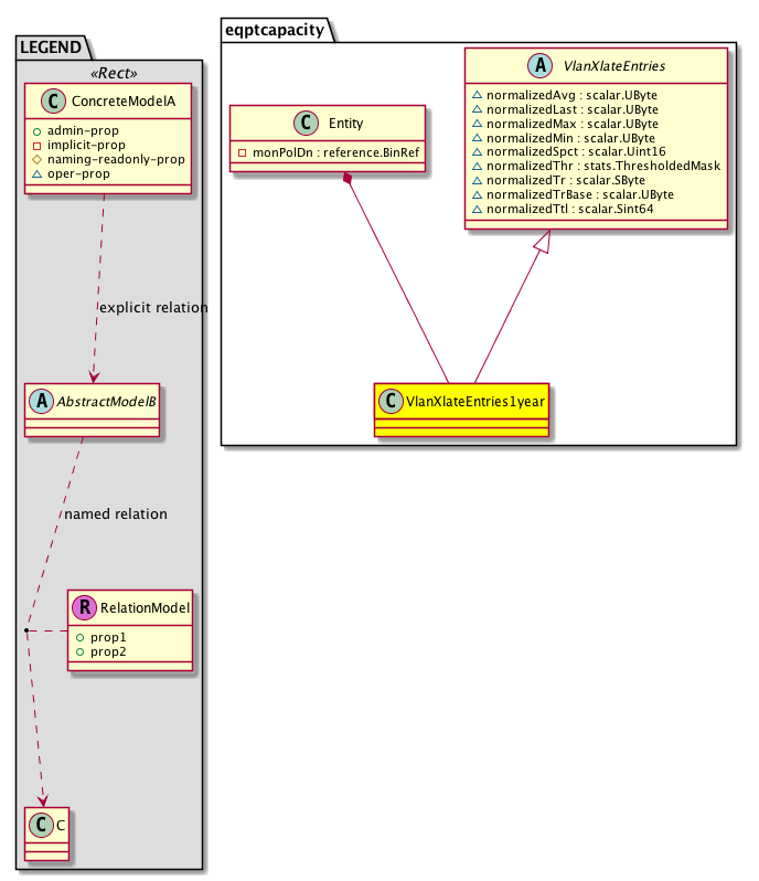 [V] eqptcapacity:VlanXlateEntries1year Router IP entry statistics. A class that represents the most current statistics for Vlan Xlate entries in a 1 year sampling interval. This class updates every day.