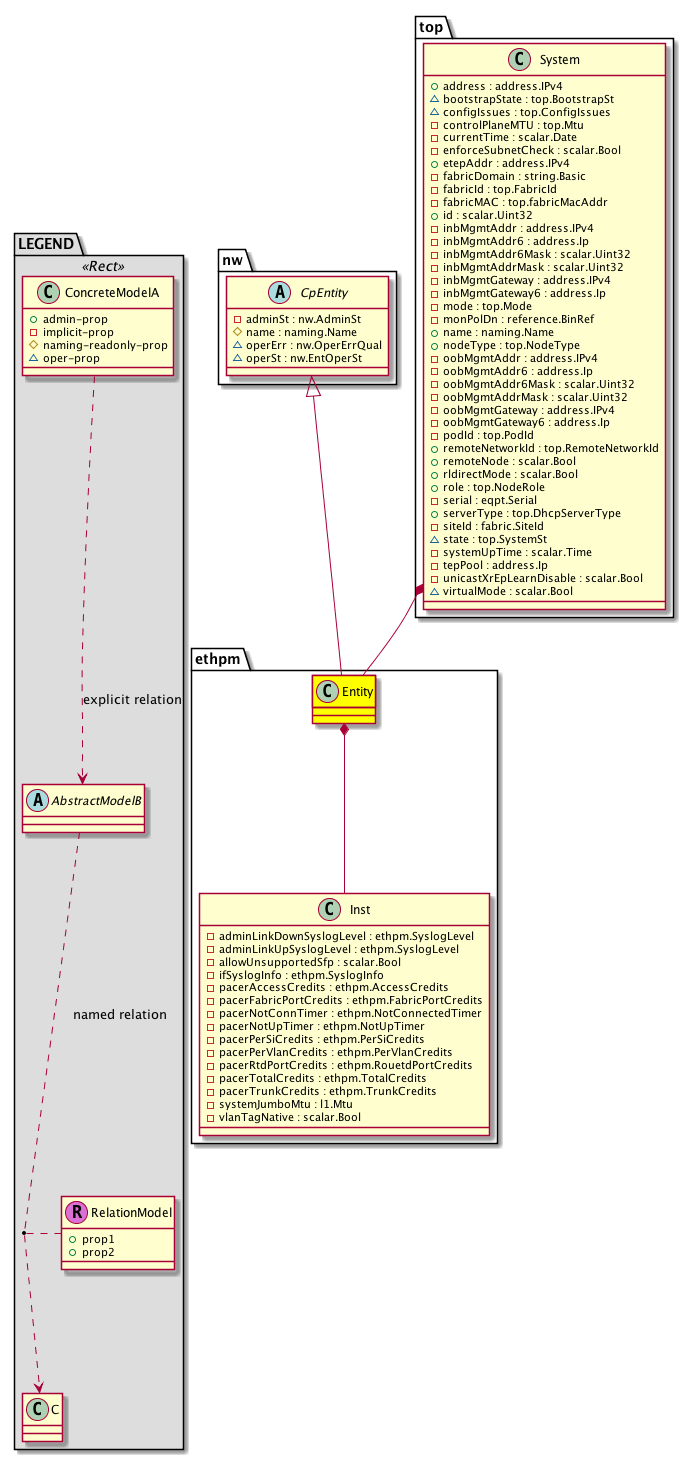 [V] nw:CpEntity The control plane entity abstraction. This object represents a feature or protocol on the switch. For example, OSPF and VPC features.