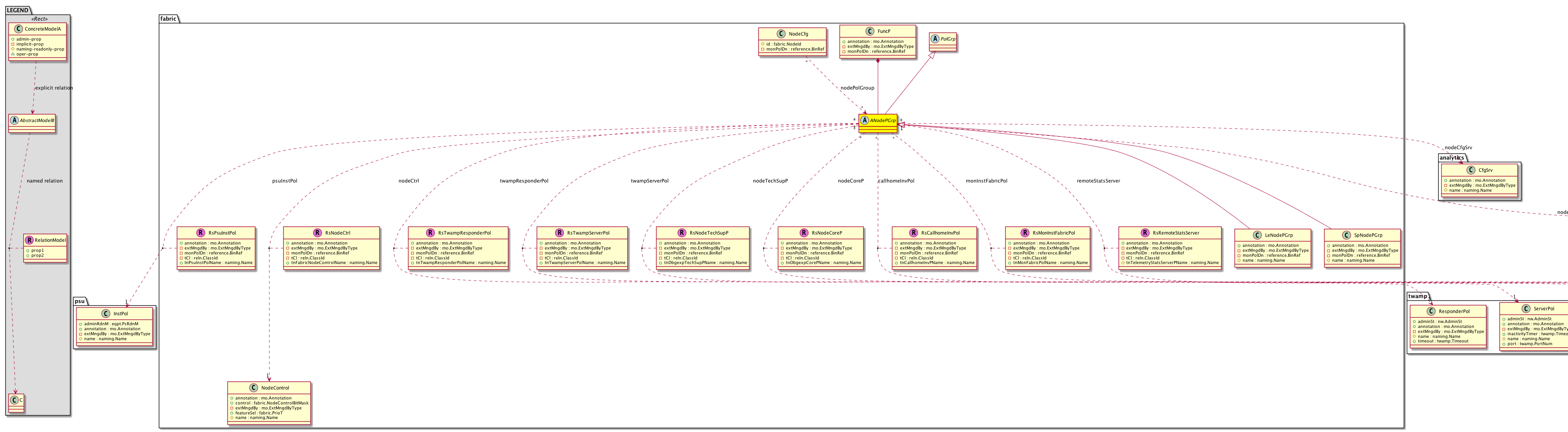 Relations: fabric:RsCallhomeInvPol, fabric:RsMonInstFabricPol, fabric:RsNodeCfgSrv, fabric:RsNodeCoreP, fabric:RsNodeCtrl, fabric:RsNodeFlowServers, fabric:RsNodeTechSupP, fabric:RsPsuInstPol, fabric:RsRemoteStatsServer, fabric:RsTwampResponderPol, fabric:RsTwampServerPol, fabric:RtNodePolGroup,