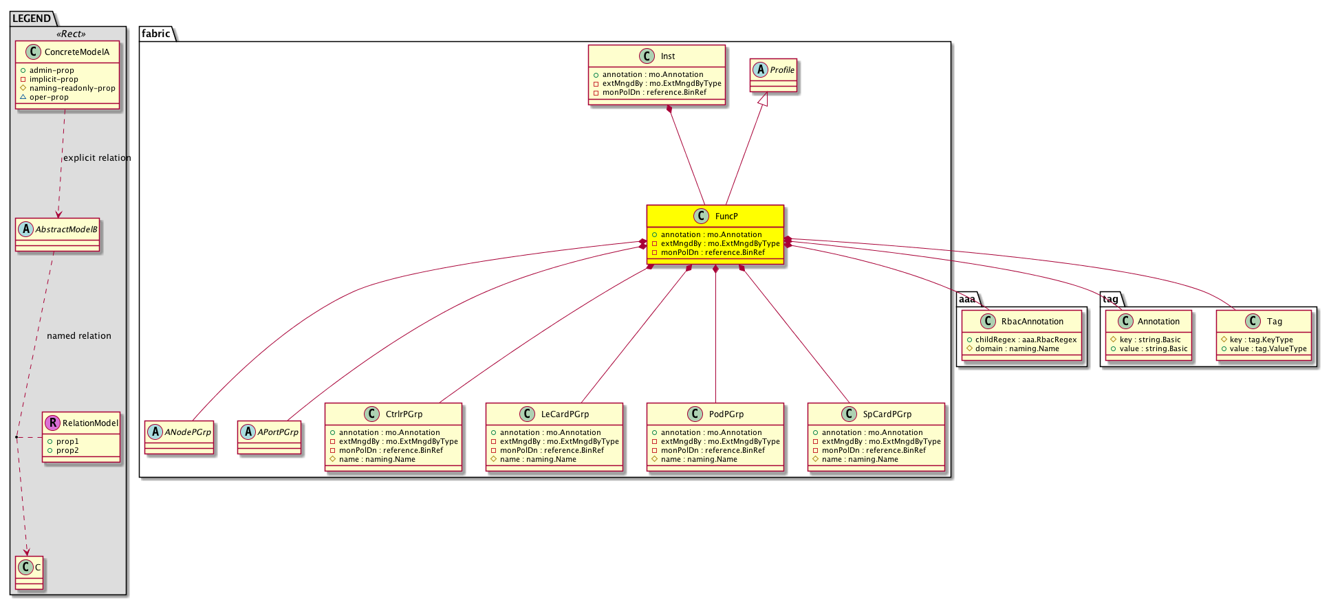 fabric:RtPodPolGroup A target relation to a pod policy group. Note that this relation is an internal object. |