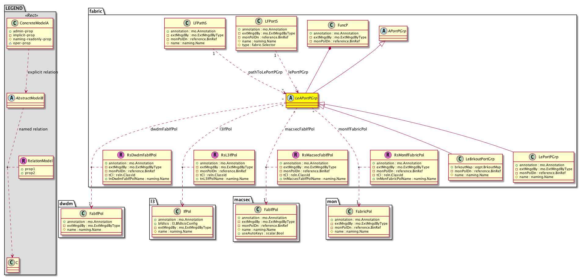 Relations: fabric:RsDwdmFabIfPol, fabric:RsL3IfPol, fabric:RsMacsecFabIfPol, fabric:RsMonIfFabricPol, fabric:RtLePortPGrp, fabric:RtPathToLePortPGrp,