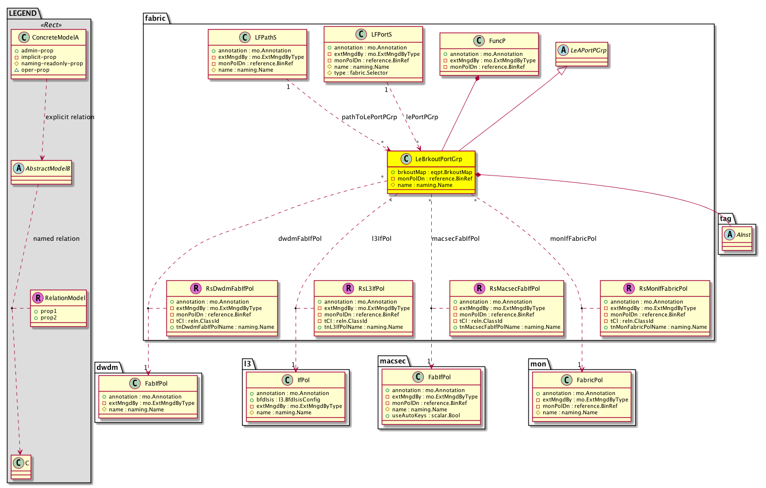 Relations: fabric:RsDwdmFabIfPol, fabric:RsL3IfPol, fabric:RsMacsecFabIfPol, fabric:RsMonIfFabricPol, fabric:RtLePortPGrp, fabric:RtPathToLePortPGrp,