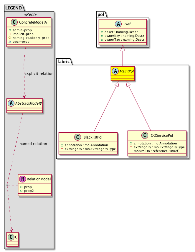 [V] fabric:MaintPol The maintenance policy. This is used for listing blacklisted or inactive devices.