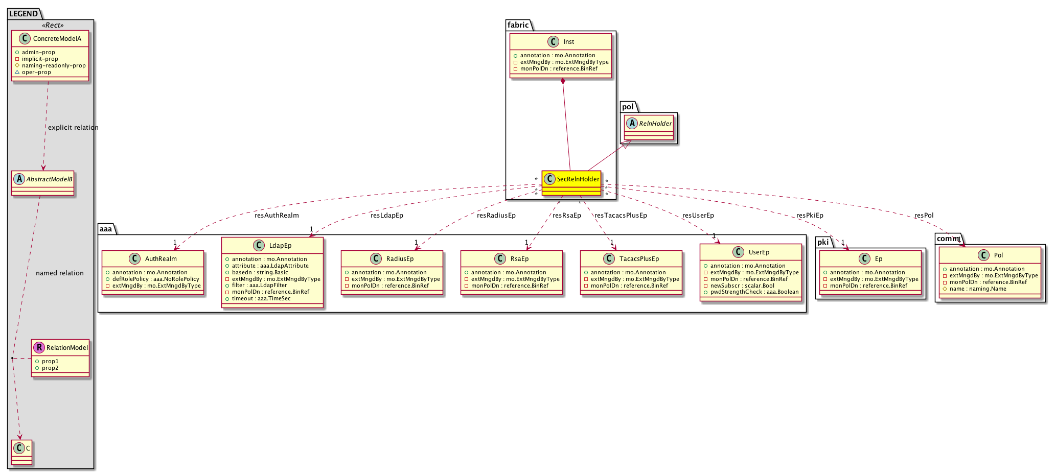 Relations To: aaa:AuthRealm, aaa:LdapEp, pki:Ep, comm:Pol, aaa:RadiusEp, aaa:RsaEp, aaa:TacacsPlusEp, aaa:UserEp,