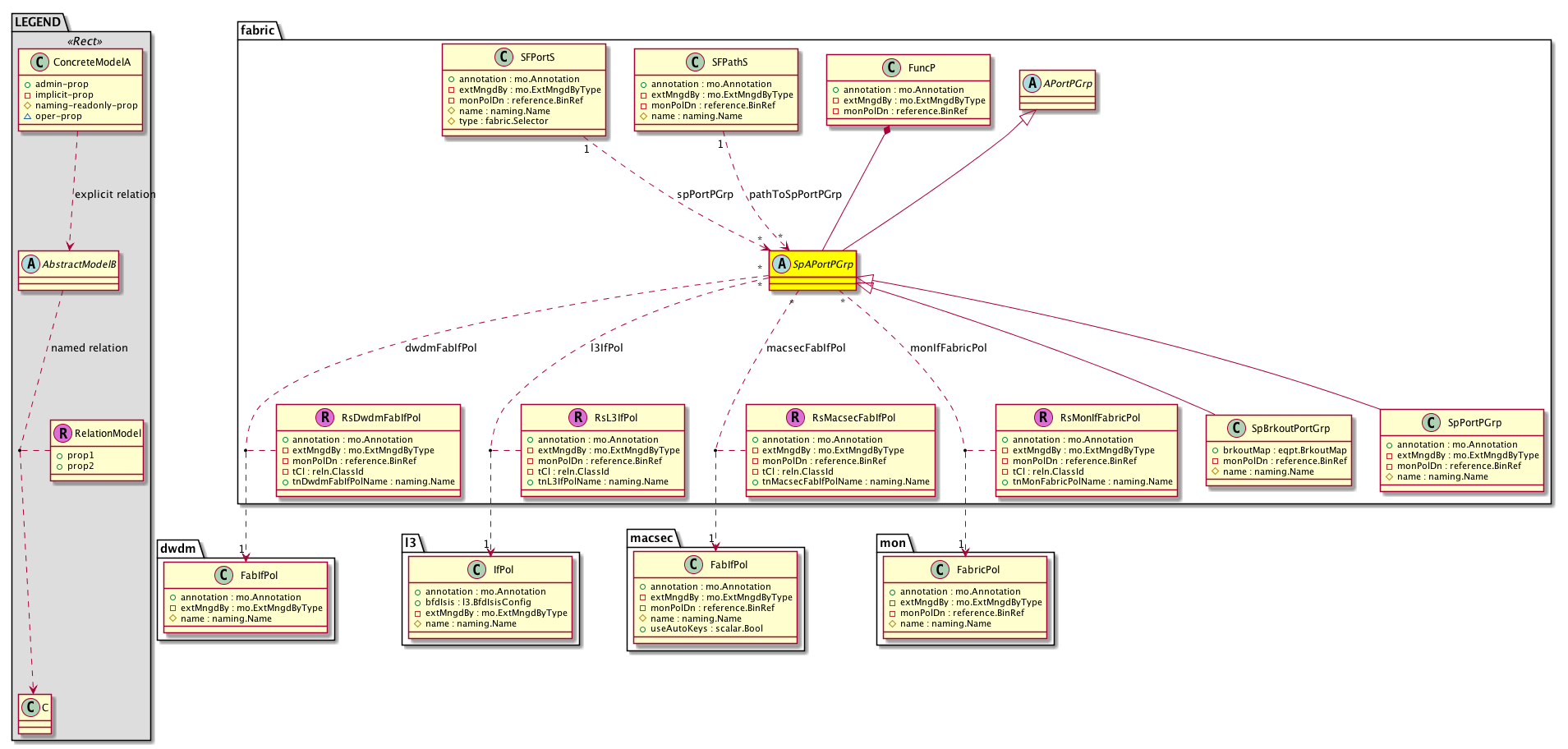 Relations: fabric:RsDwdmFabIfPol, fabric:RsL3IfPol, fabric:RsMacsecFabIfPol, fabric:RsMonIfFabricPol, fabric:RtPathToSpPortPGrp, fabric:RtSpPortPGrp,