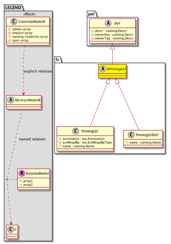[V] fc:APinningLbl  Fiber Channel Pinning Label. Its used for pinning host interfaces to uplink interfaces. This label should match with the name of a fc:PinningP configured this tenant or tenant-commmon. Once this label is configured under a fv:RsFcPathAtt, that host interface will get pinned to the uplink interfaces specified in the Pinning profile.