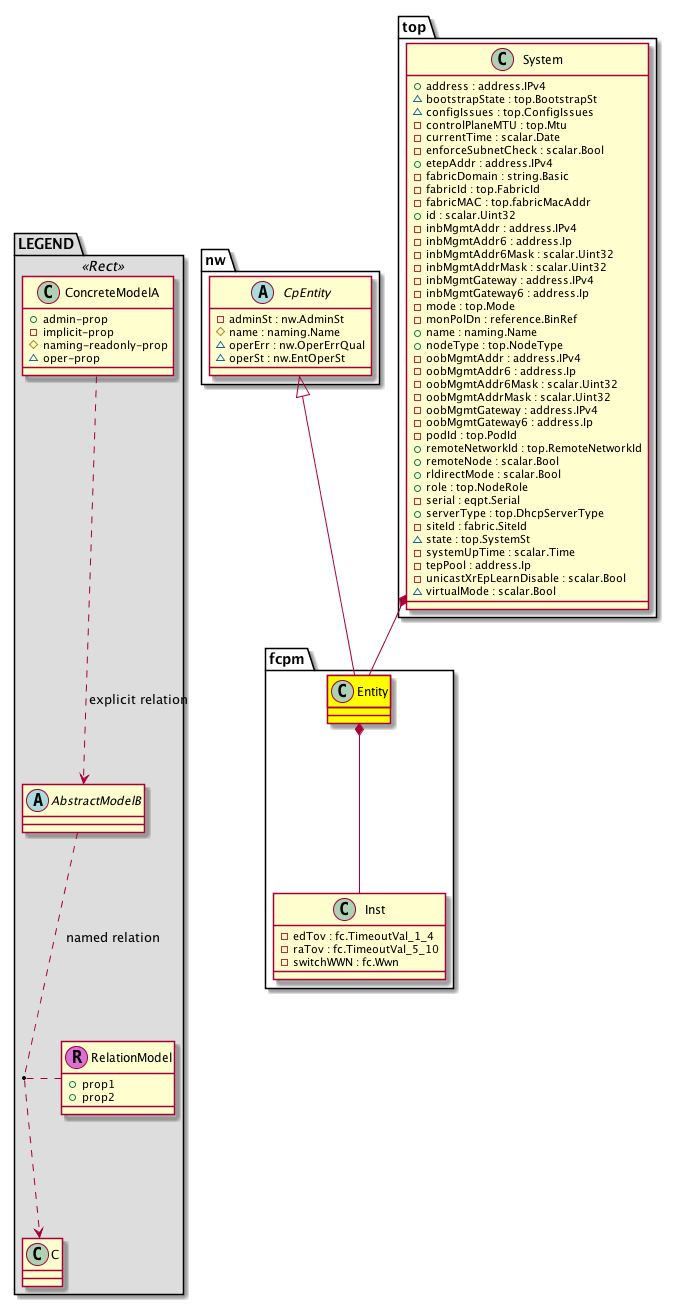 [V] nw:CpEntity The control plane entity abstraction. This object represents a feature or protocol on the switch. For example, OSPF and VPC features.