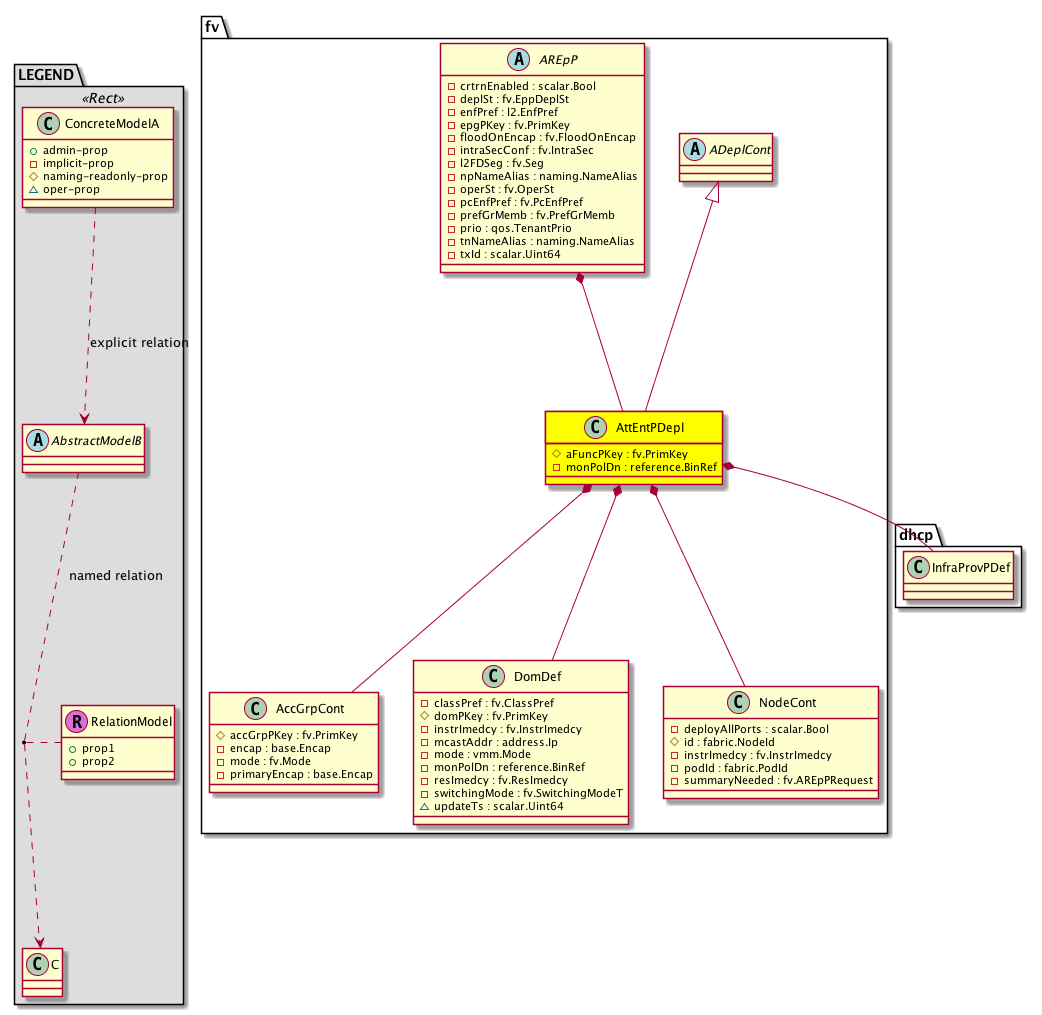 fv:AttEntPDepl The container for the Attached Entity Profile Deployment. |