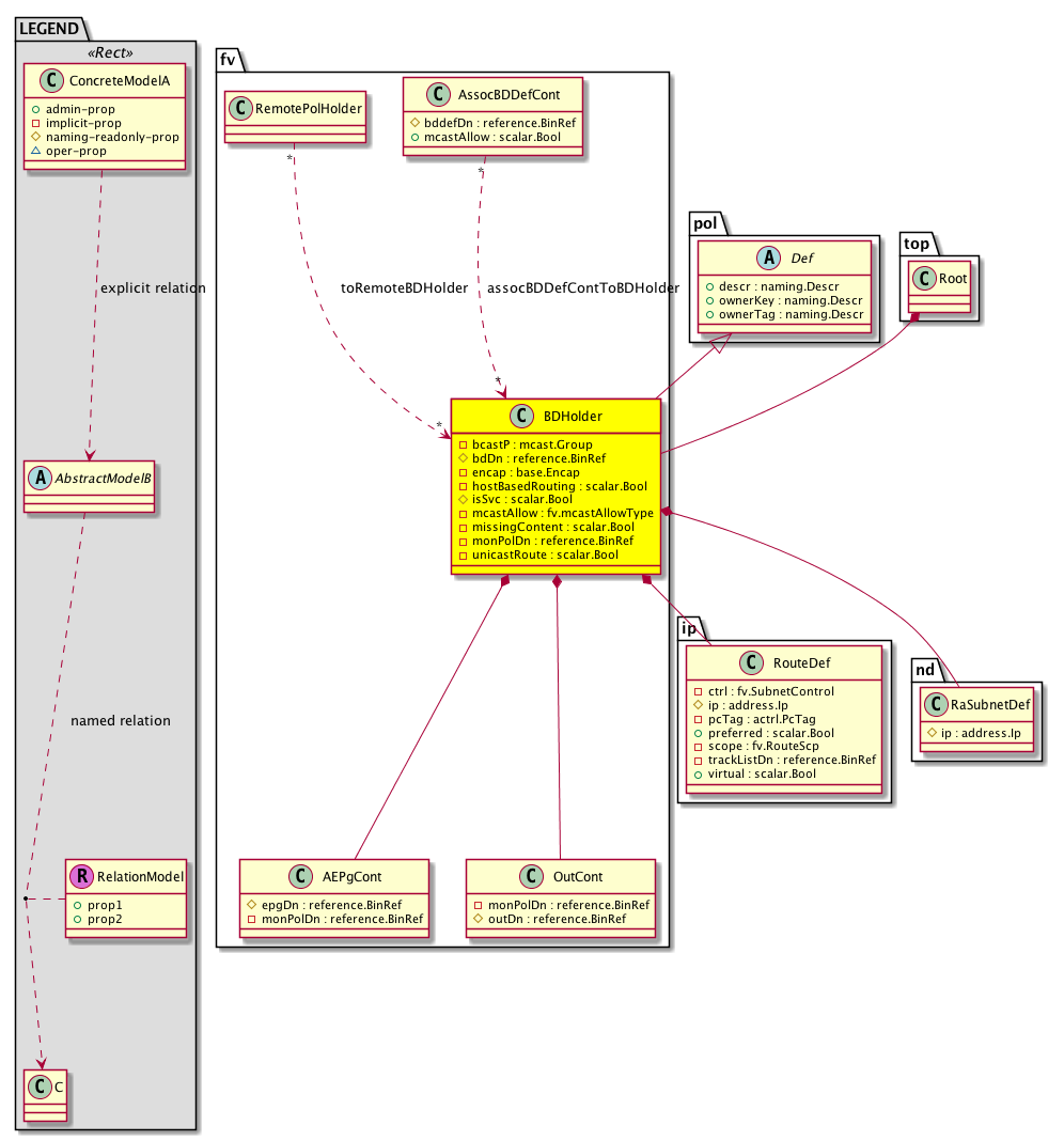 ip:RouteDef The route definitions, which are are used for pushing subnets and static routes to PE. They also push subnets under EpPD to VMMMGR
