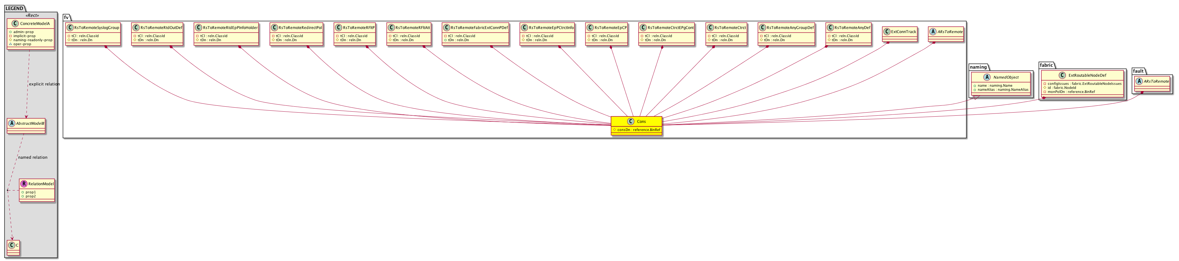 fv:RemotePolHolder A container existing on each node to efficiently download policies to the node. For example: filters, bridge domain, and taboo policies. This is an internal object. |