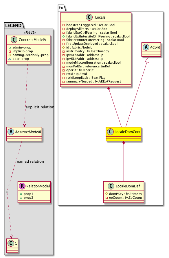 [V] fv:LocaleDomDef A domain definition. This is a domain that causes an endpoint group policy to be deployed on the node. This is an internal object.
