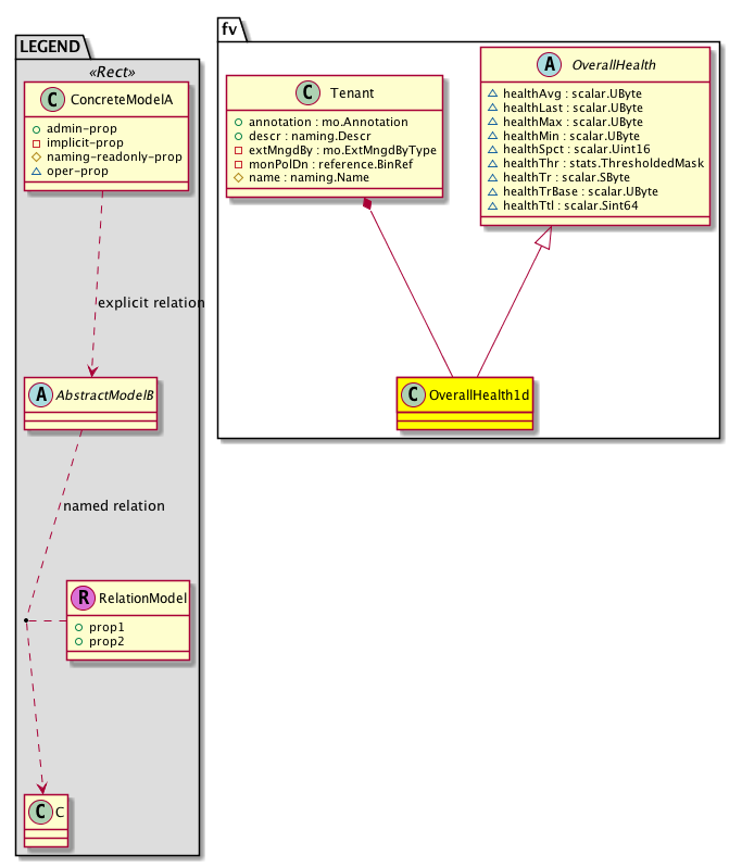 [V] fv:OverallHealth1d A class that represents the most current statistics for overall tenant health in a 1 day sampling interval. This class updates every hour.
