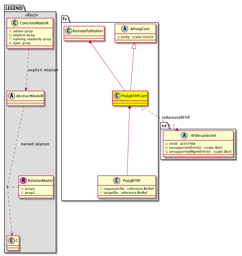 [V] fv:RemotePolHolder A container existing on each node to efficiently download policies to the node. For example: filters, bridge domain, and taboo policies. This is an internal object.