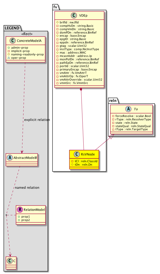 fv:RsVNode A source relation to an opflex-capable virtual node that is connected to the fabric. This is an internal object. |