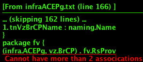 Relations To: vz:BrCP, vz:CPIf, qos:CustomPol, vz:Taboo, fv:EPg, fv:BD,