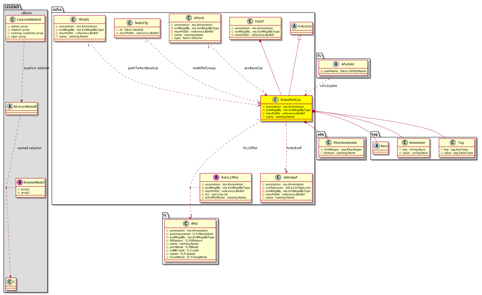 Relations: infra:RsFcAttEntP, infra:RsFcL2IfPol, infra:RtAccBaseGrp, infra:RtNodePolGroup, infra:RtPathToAccBaseGrp, infra:RtStFcGrpAtt,