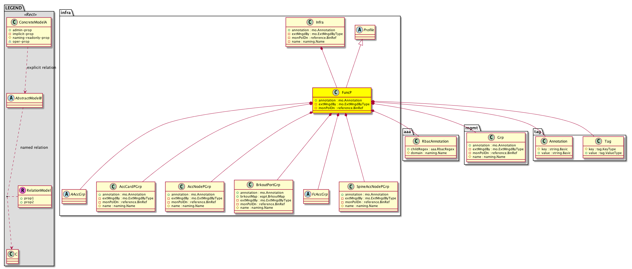 infra:RtAccNodePGrp A target relation to the node policy group. Note that this relation is an internal object. |