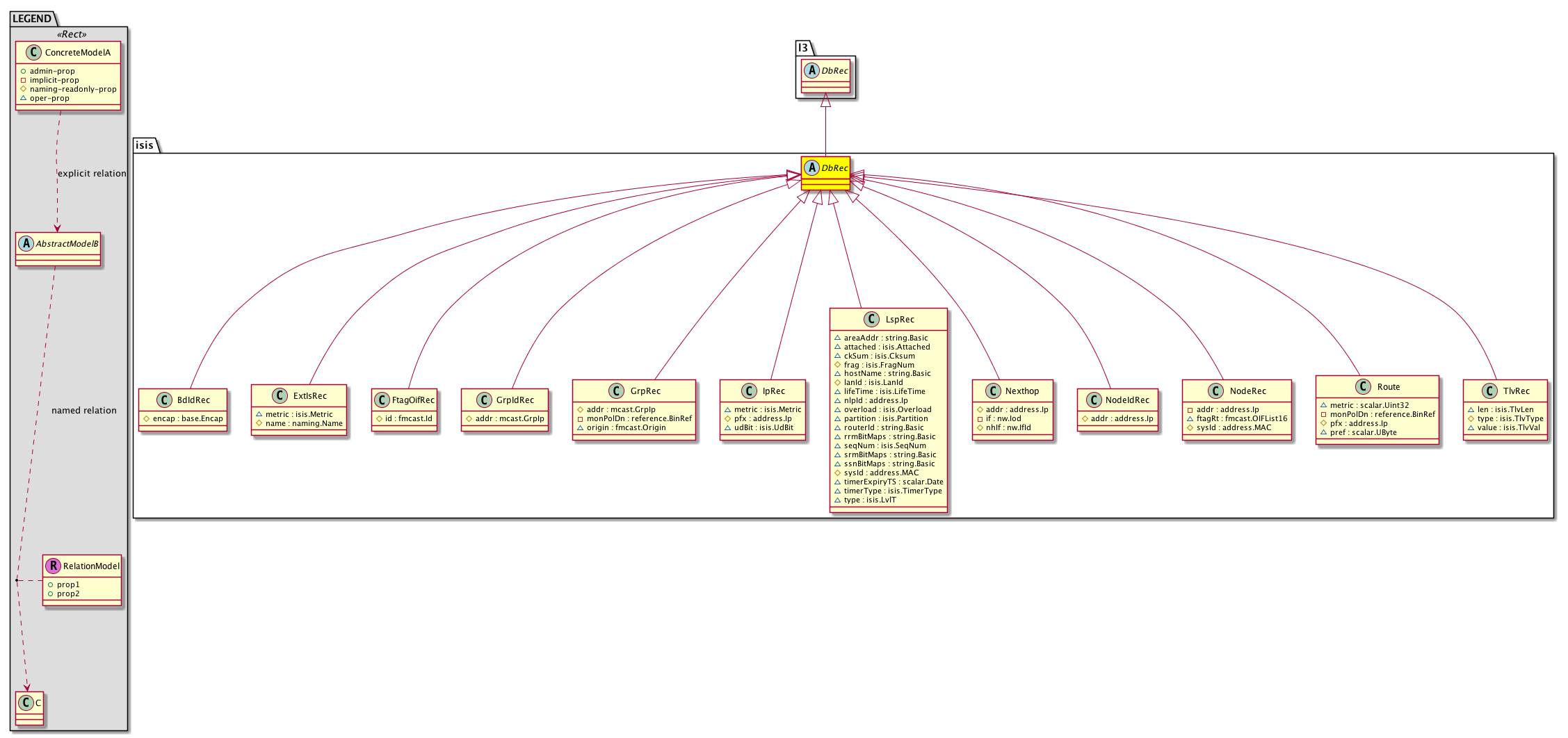 Super Mo: l3:DbRec, Sub Mos: isis:BdIdRec, isis:ExtIsRec, isis:FtagOifRec, isis:GrpIdRec, isis:GrpRec, isis:IpRec, isis:LspRec, isis:Nexthop, isis:NodeIdRec, isis:NodeRec, isis:Route, isis:TlvRec, |