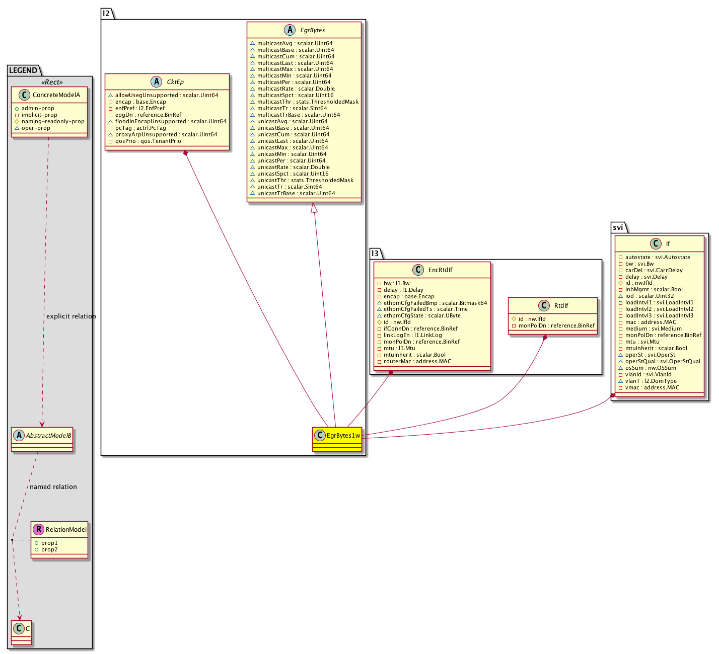 l2:EgrBytes1w Egress byte. A class that represents the most current statistics for egress bytes in a 1 week sampling interval. This class updates every day. |