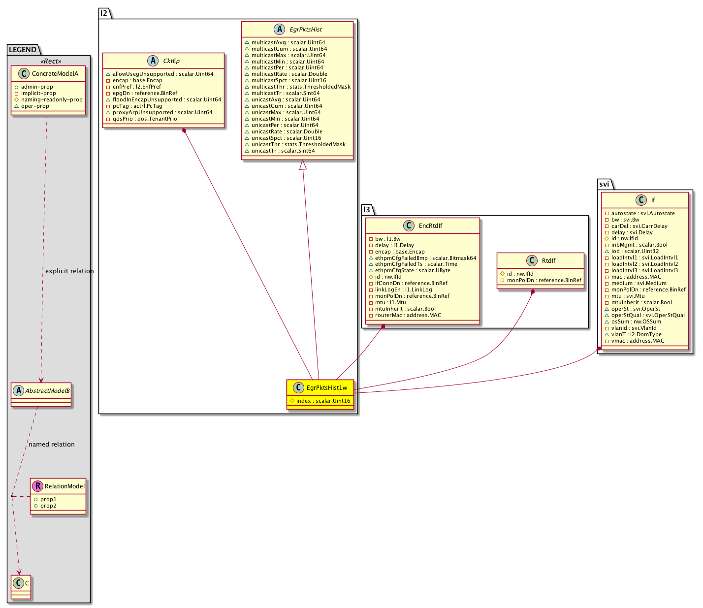 l2:EgrPktsHist1w Egress packet. A class that represents historical statistics for egress packets in a 1 week sampling interval. This class updates every day. |