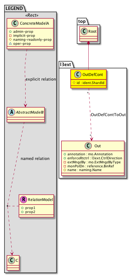 l3ext:RsNodeDefL3OutAtt The object used for creating a static association with a fabric node. Existence of this implies that the corresponding set of policies will be resolved into the node pointed to by the relationship. |