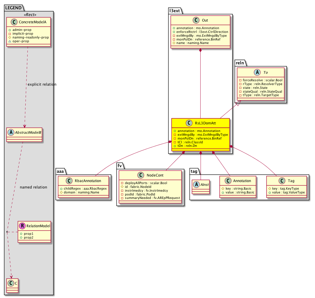 l3ext:RsL3DomAtt A source relation to the outside domain advertising these prefixes and relationship to the L2 domain for external SWI. |