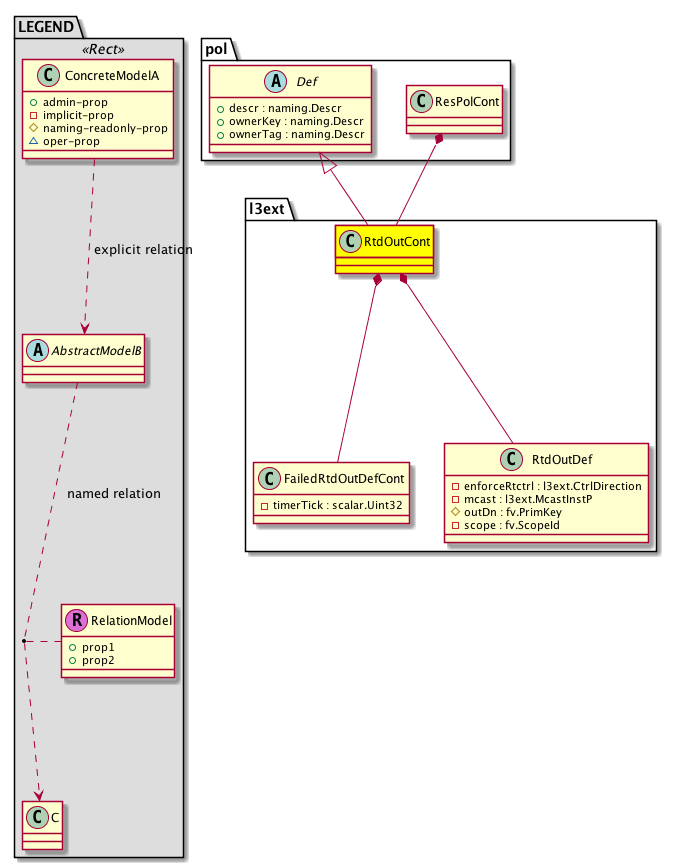 ip:RouteDef The route definitions, which are are used for pushing subnets and static routes to PE. They also push subnets under EpPD to VMMMGR