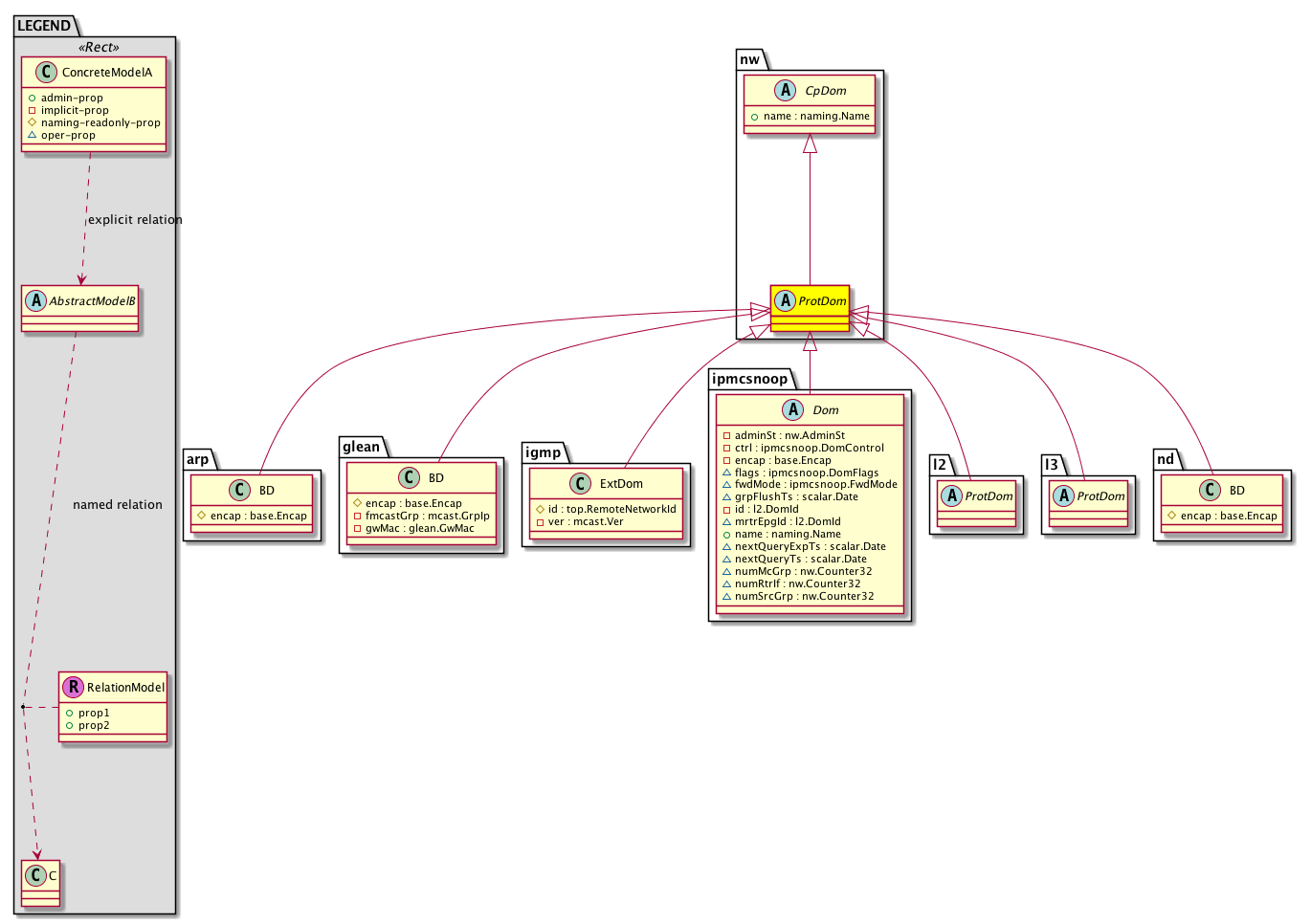 Super Mo: nw:CpDom, Sub Mos: arp:BD, glean:BD, igmp:ExtDom, ipmcsnoop:Dom, l2:ProtDom, l3:ProtDom, nd:BD, |
