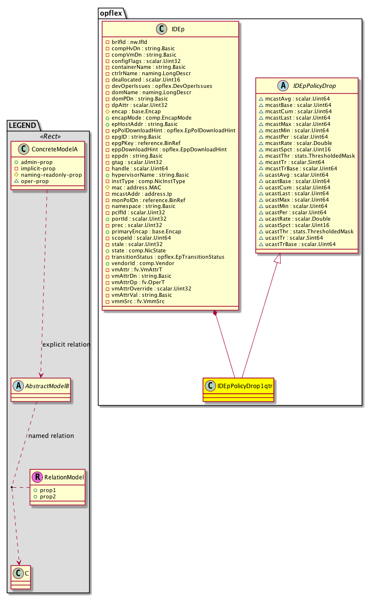 [V] opflex:IDEpPolicyDrop VNIC Policy drop statistics. A super class that represents the most current statistics for EPG policy drop statistics.