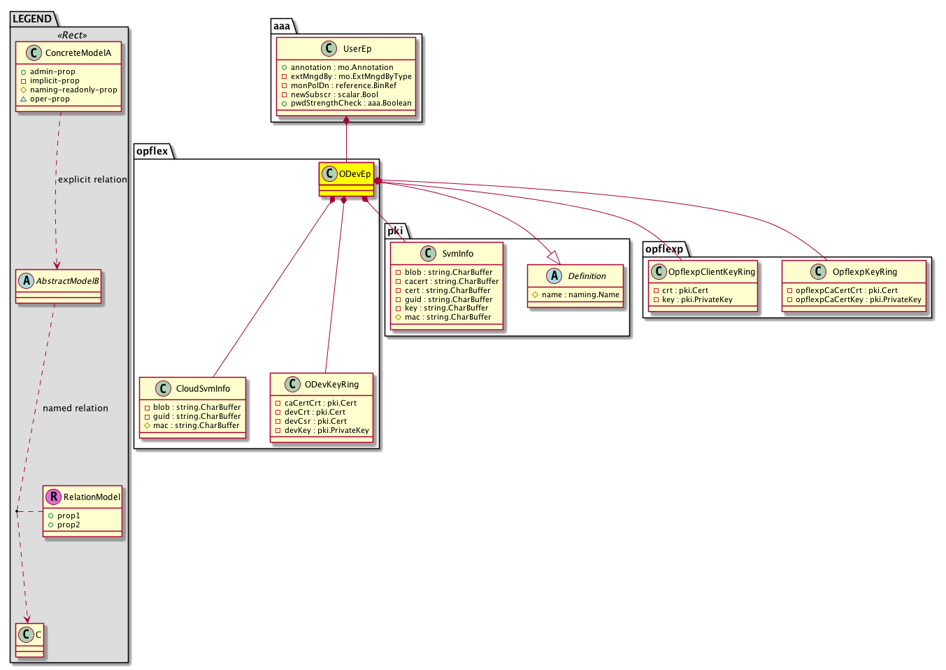 Super Mo: pki:Definition, Container Mos: aaa:UserEp (deletable:no), Contained Mos: opflex:CloudSvmInfo, opflex:ODevKeyRing, opflexp:OpflexpClientKeyRing, opflexp:OpflexpKeyRing, pki:SvmInfo, |