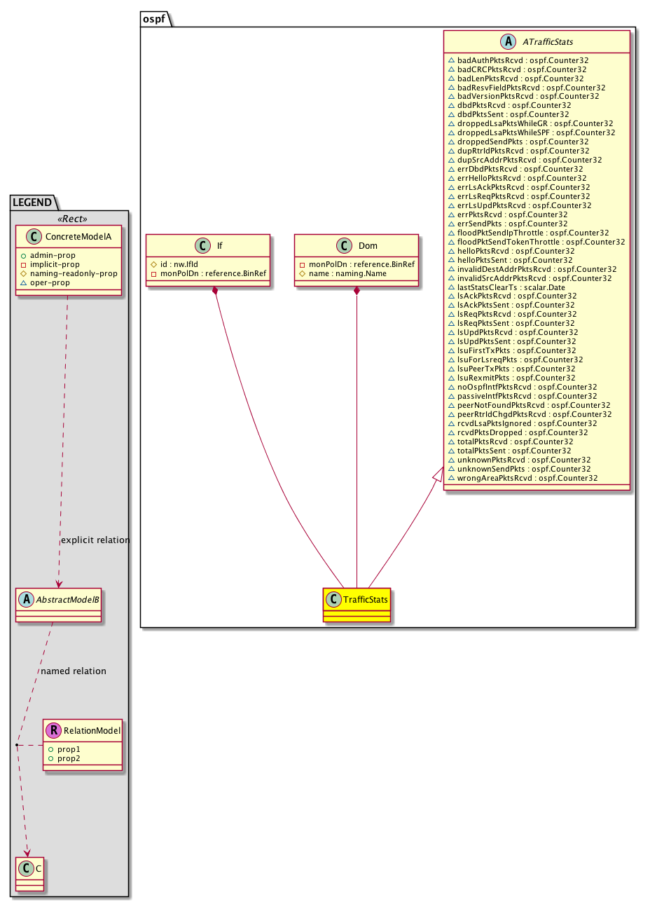 Super Mo: ospf:ATrafficStats, Container Mos: ospf:Dom (deletable:yes), ospf:If (deletable:yes), |