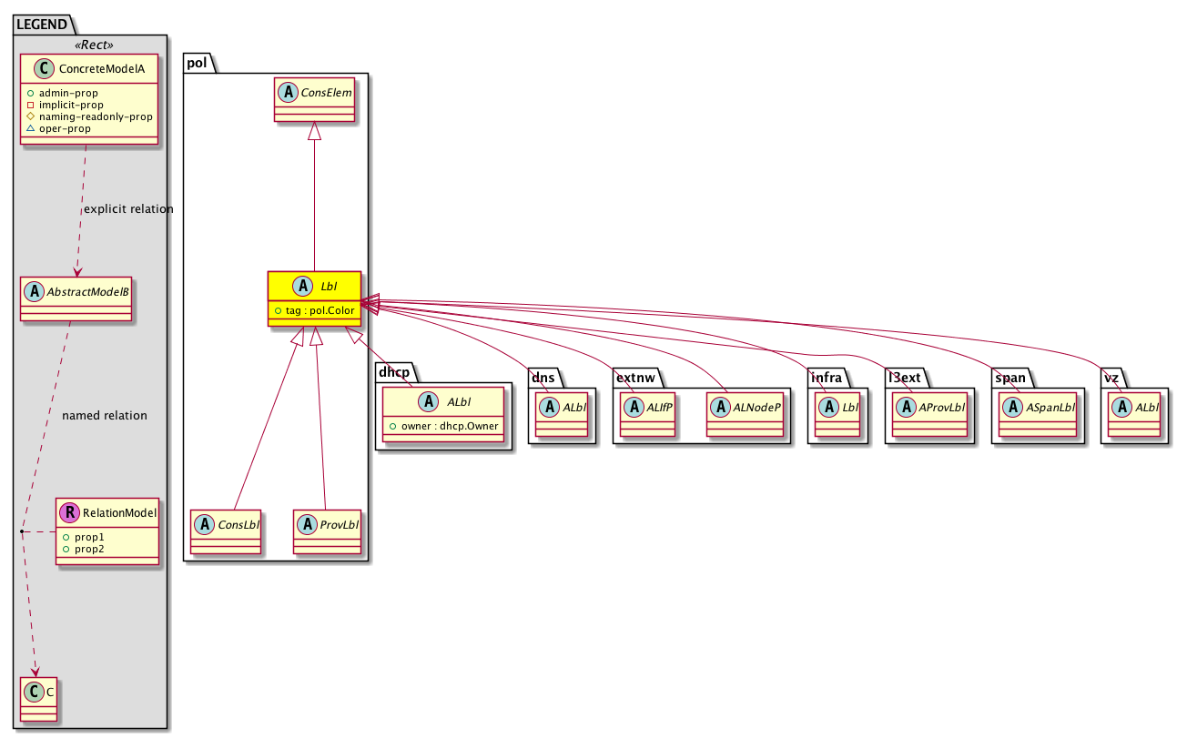 Sub Mos: dhcp:ALbl, dns:ALbl, extnw:ALIfP, extnw:ALNodeP, infra:Lbl, l3ext:AProvLbl, pol:ConsLbl, pol:ProvLbl, span:ASpanLbl, vz:ALbl,