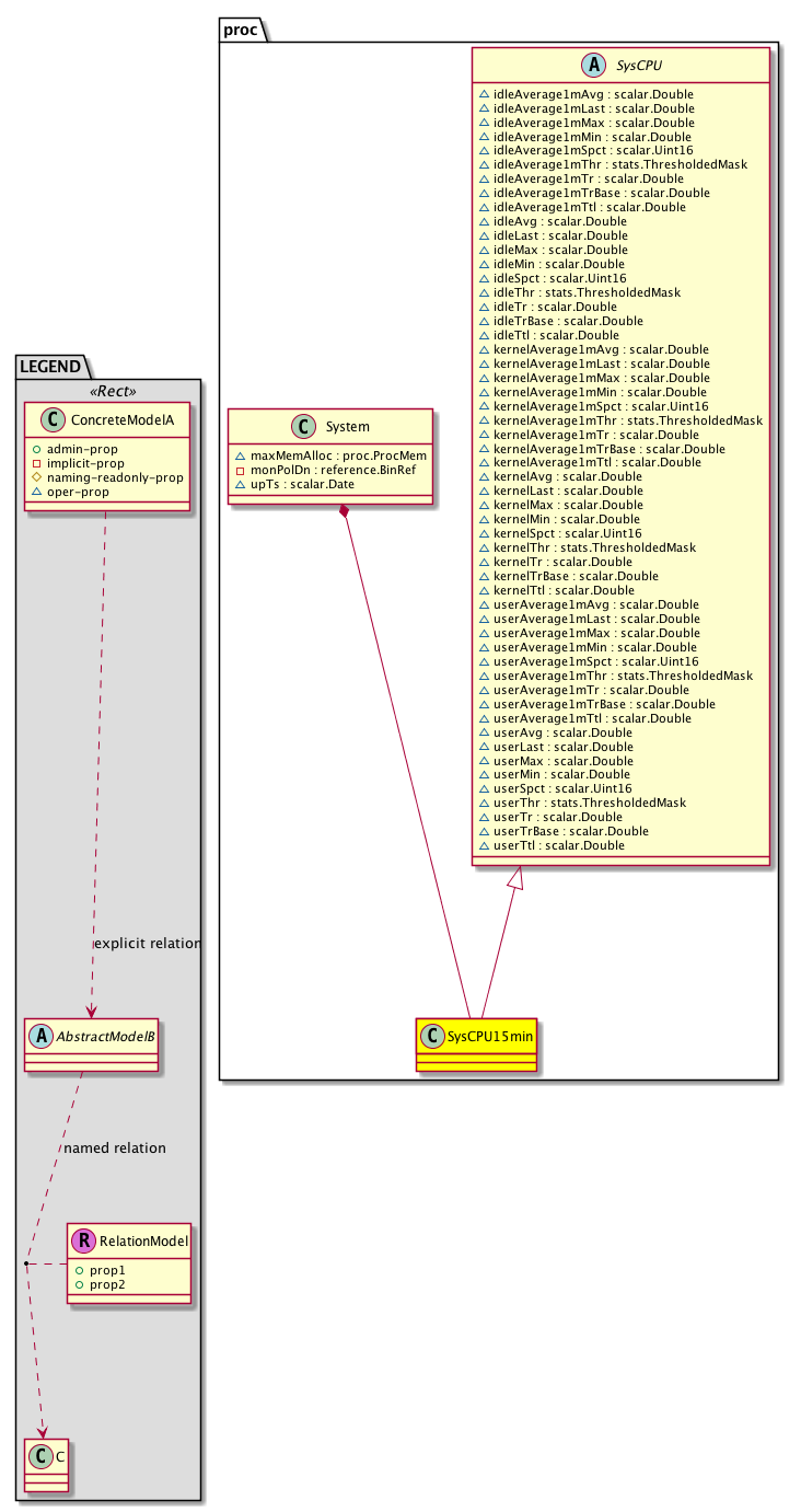 kernelAverage1mTrBase (proc:SysCPU:kernelAverage1mTrBase) 1 minute kernel CPU average. This is the cumulative value of the counter from the previous collection interval. Used for internal purposes. |
