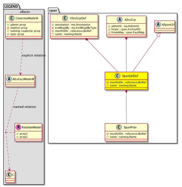 span:SrcGrpDef The SPAN source group definitions. The SPAN source is where traffic is sampled. A SPAN source can be an endpoint group (EPG), one or more ports, or port traffic filtered by an EPG (access SPAN), a Layer 2 bridge domain, or a Layer 3 context (fabric SPAN). When you create a traffic monitoring session, you must select a SPAN source and a SPAN destination. The type of session (Tenant, Access or fabric) determines the allowed types of SPAN sources an... |