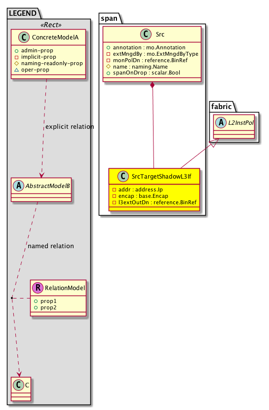 span:SrcGrpDef The SPAN source group definitions. The SPAN source is where traffic is sampled. A SPAN source can be an endpoint group (EPG), one or more ports, or port traffic filtered by an EPG (access SPAN), a Layer 2 bridge domain, or a Layer 3 context (fabric SPAN). When you create a traffic monitoring session, you must select a SPAN source and a SPAN destination. The type of session (Tenant, Access or fabric) determines the allowed types of SPAN sources an... |