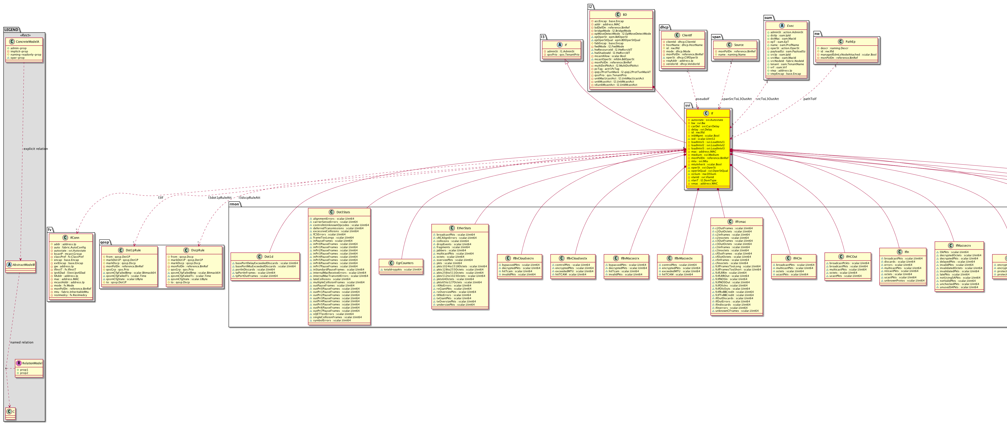 Super Mo: l3:If, Container Mos: l2:BD (deletable:no), Contained Mos: rmon:Dot1d, rmon:Dot3Stats, rmon:EgrCounters, rmon:EtherStats, rmon:IfBvCloudsecrx, rmon:IfBvCloudsectx, rmon:IfBvMacsecrx, rmon:IfBvMacsectx, rmon:IfFcmac, rmon:IfHCIn, rmon:IfHCOut, rmon:IfIn, rmon:IfMacsecrx, rmon:IfMacsectx, rmon:IfOut, rmon:IfStorm, rmon:IngrCounters, rmon:IpIn, rmon:Ipv6IfStats, Relations From: dhcp:ClientIf, span:Source, oam:Exec, nw:PathEp, Relations To: fv:IfConn, qosp:Dot1pRule, qosp:DscpRule, Relations: l3:RsL3If, l3:RsL3dot1pRuleAtt, l3:RsL3dscpRuleAtt, l3:RtPseudoIf, l3:RtSpanSrcToL3OutAtt, l3:RtSrcToL3OutAtt, nw:RtPathToIf, |