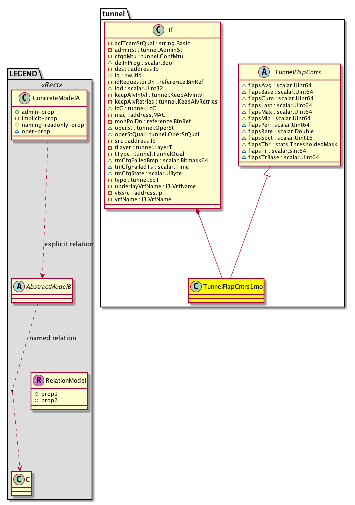 [V] tunnel:TunnelFlapCntrs1mo Tunnel Flap counters. A class that represents the most current statistics for Tuennl Flap Counters in a 1 month sampling interval. This class updates every day.