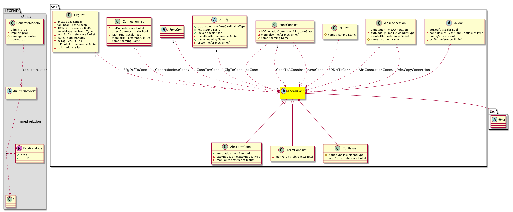 Relations From: vns:AbsConnection, vns:BDDef, vns:FuncConnInst, vns:ACCfg, vns:AFuncConn, vns:ConnectionInst, vns:EPgDef,