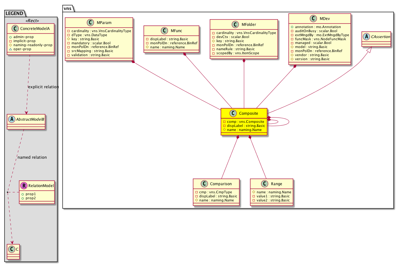 vns:MParam A meta parameter. The model utilizes a generic configuration consisting of MFolders and MParams. This enables configuration to be specified as a hierarchy. The metadata within this model consists of a key, a type (integer, boolean), and other attributes related to parameters. |